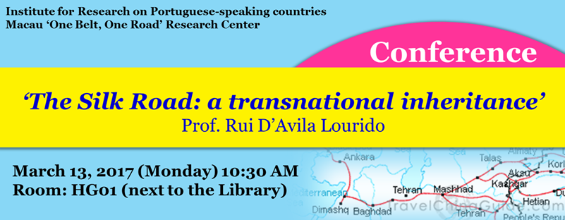 本校葡語國家研究院及澳門一帶一路研究中心主辦,以“絲綢之路:跨國傳承”(“The Silk Road: a transnational inheritance”)為主題的研討會將於3月13日(星期一)在氹仔校區何賢會議中心HG01舉行,歡迎各位同學踴躍參與!