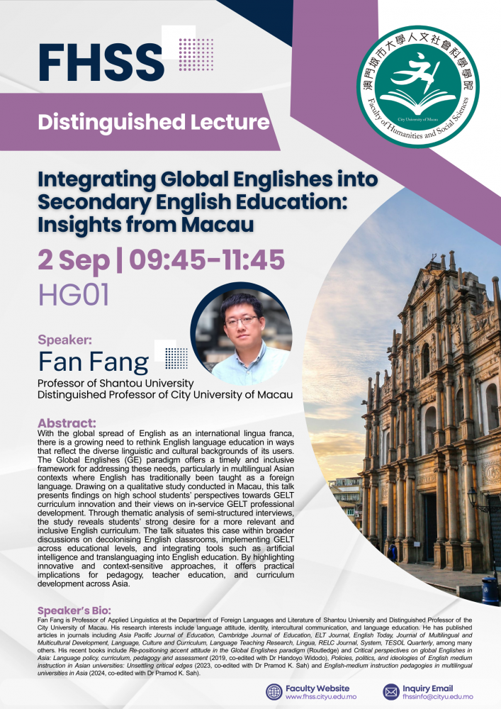 [2nd Sep] Distinguished Lecture in Applied Linguistics – Prof. Fan Fang