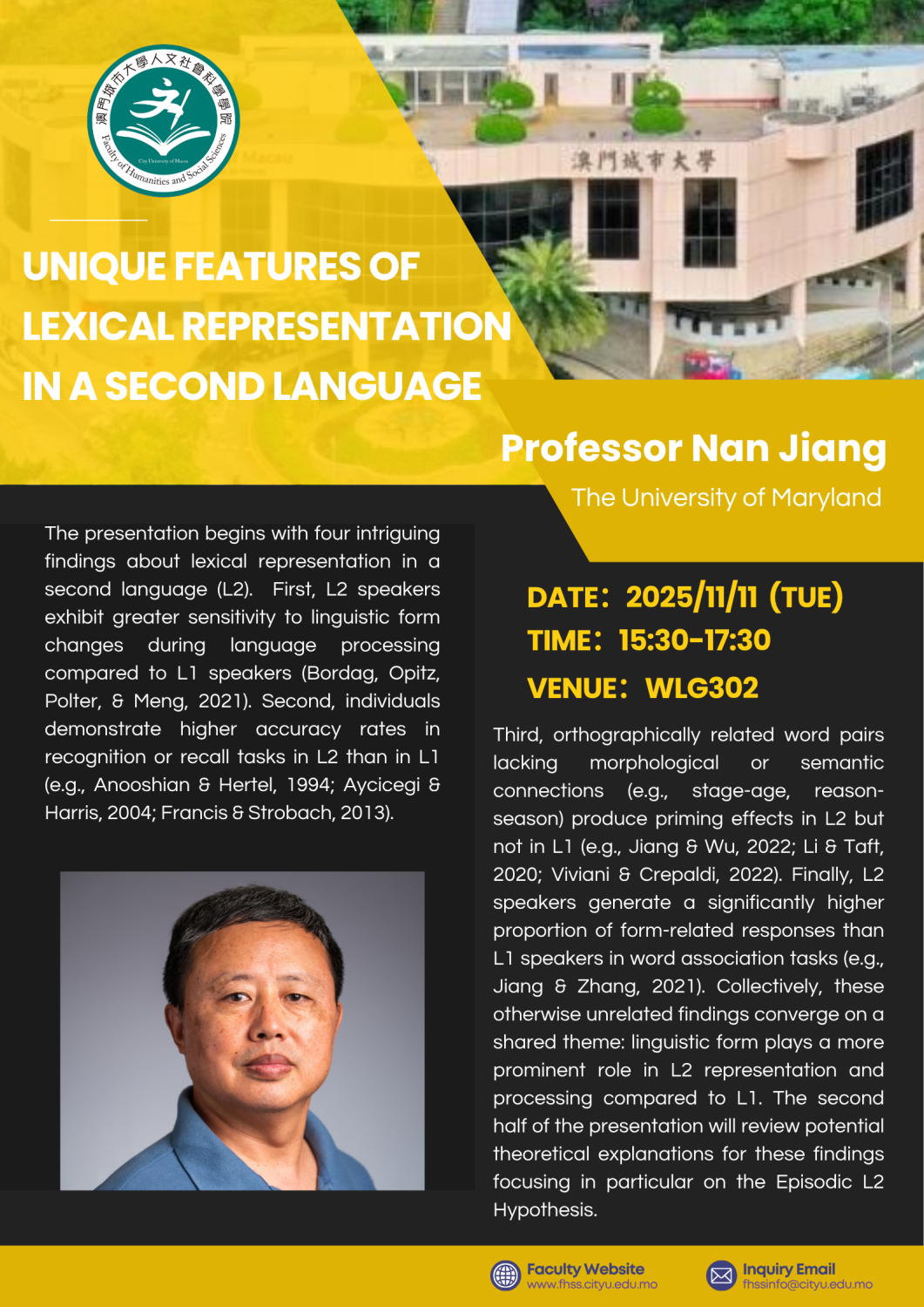[11th Nov] Distinguished Lecture in Applied Linguistics – Prof. Nan Jiang