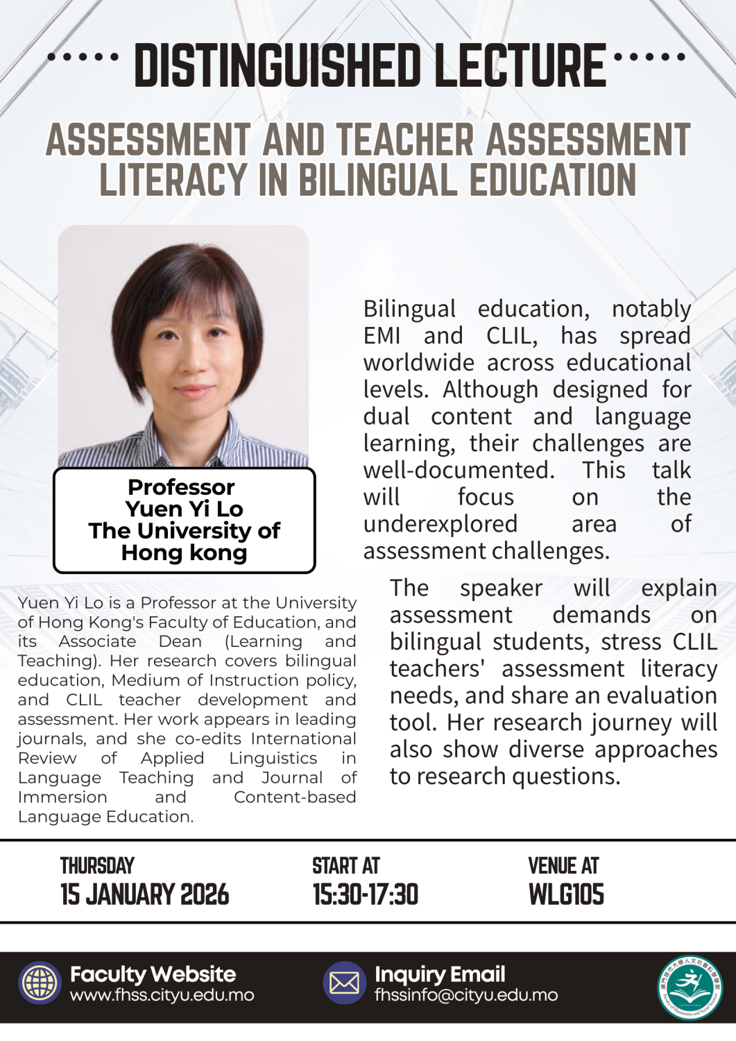 [15th Jan] Distinguished Lecture in Applied Linguistics – Prof. LO, Yuen Yi
