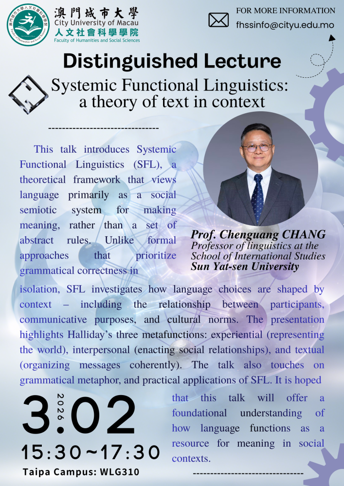 [02 March] Distinguished Lecture in Applied Linguistics – Prof. Chenguang Chang