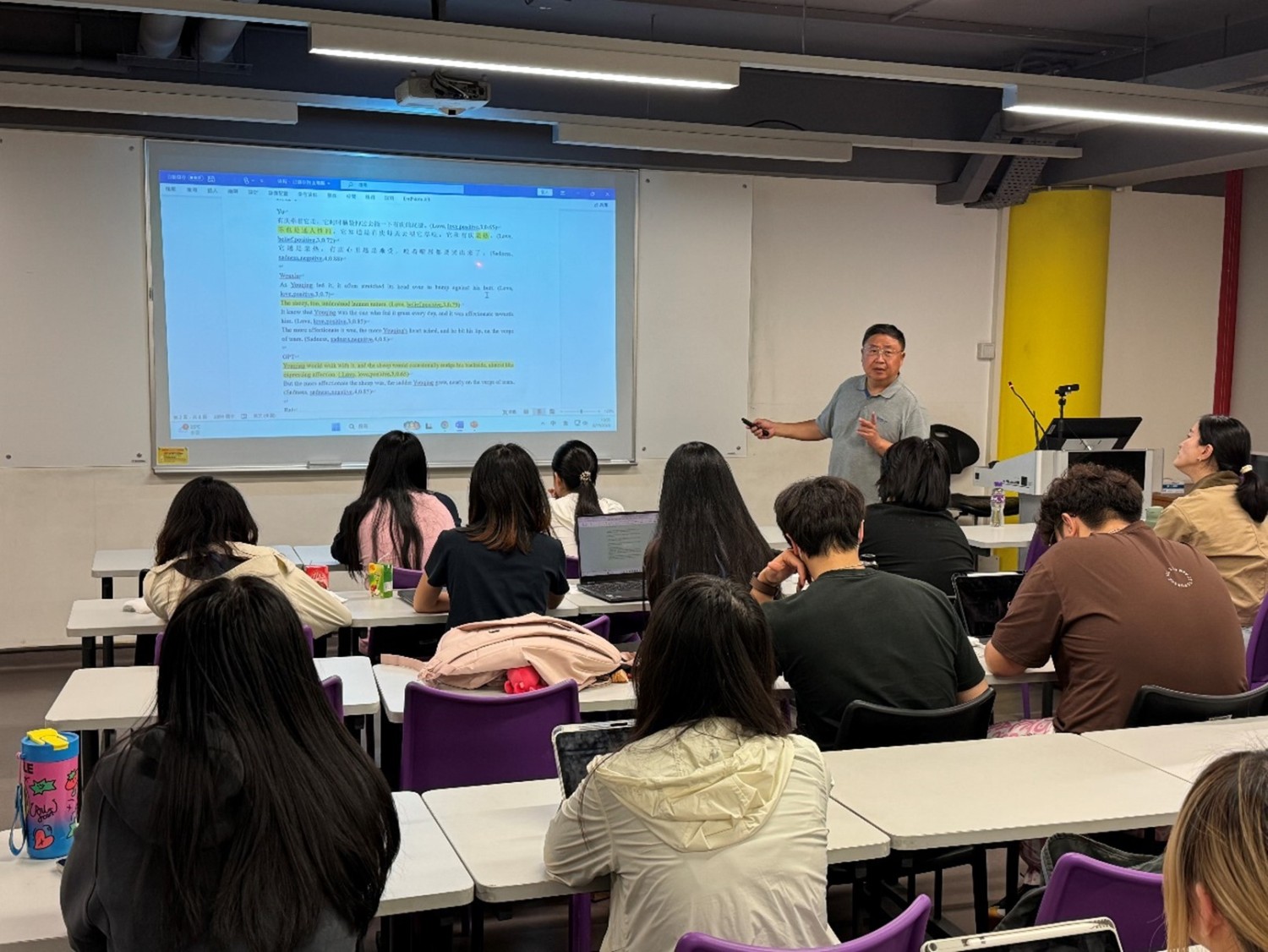 On November 6, 2025, Professor Ping Wu from the School of English and International Studies at Beijing Language and Culture University was invited to the Faculty of Humanities and Social Sciences at City University of Macau to deliver an academic lecture titled “LATEA Framework: Emotion Analysis Based on Large Language Models and Appraisal Theory” for undergraduate students. Using multi-version translations of Yu Hua's novel To Live as a case study, Professor Wu systematically demonstrated how to integrate cutting-edge AI technology with classical linguistic theories to conduct interdisciplinary research. The lecture showcased innovative applications of Appraisal Theory in analyzing emotional reproduction in literary translation, comparing human translation with machine translations (GPT-4o and ERNIE-4) across three dimensions: Attitude, Engagement, and Graduation systems.