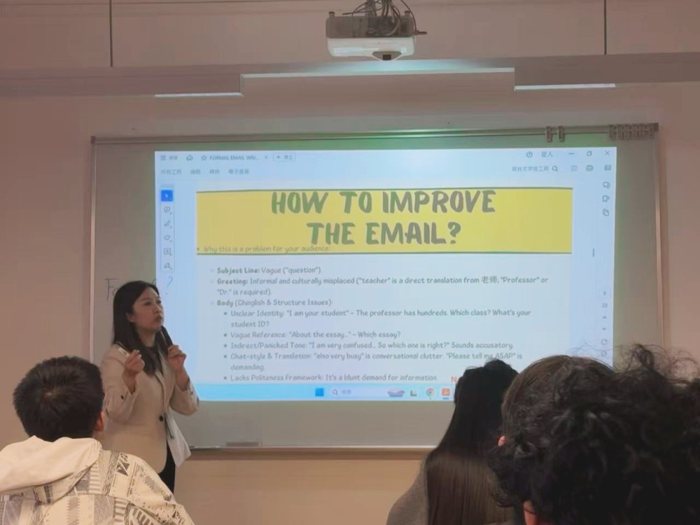 工作坊內容涵蓋如何撰寫結構完整、語氣得當的郵件,包括郵件主題、稱呼、正文及結尾等基本要素,强調避免將電子郵件當作聊天工具使用,幷指導學生選擇合適措辭與語氣。講者通過實例分析與互動講解,幫助學生理解正式郵件在學術與職場溝通中的重要性,引導學生寫出邏輯清晰、禮貌得體的郵件內容。