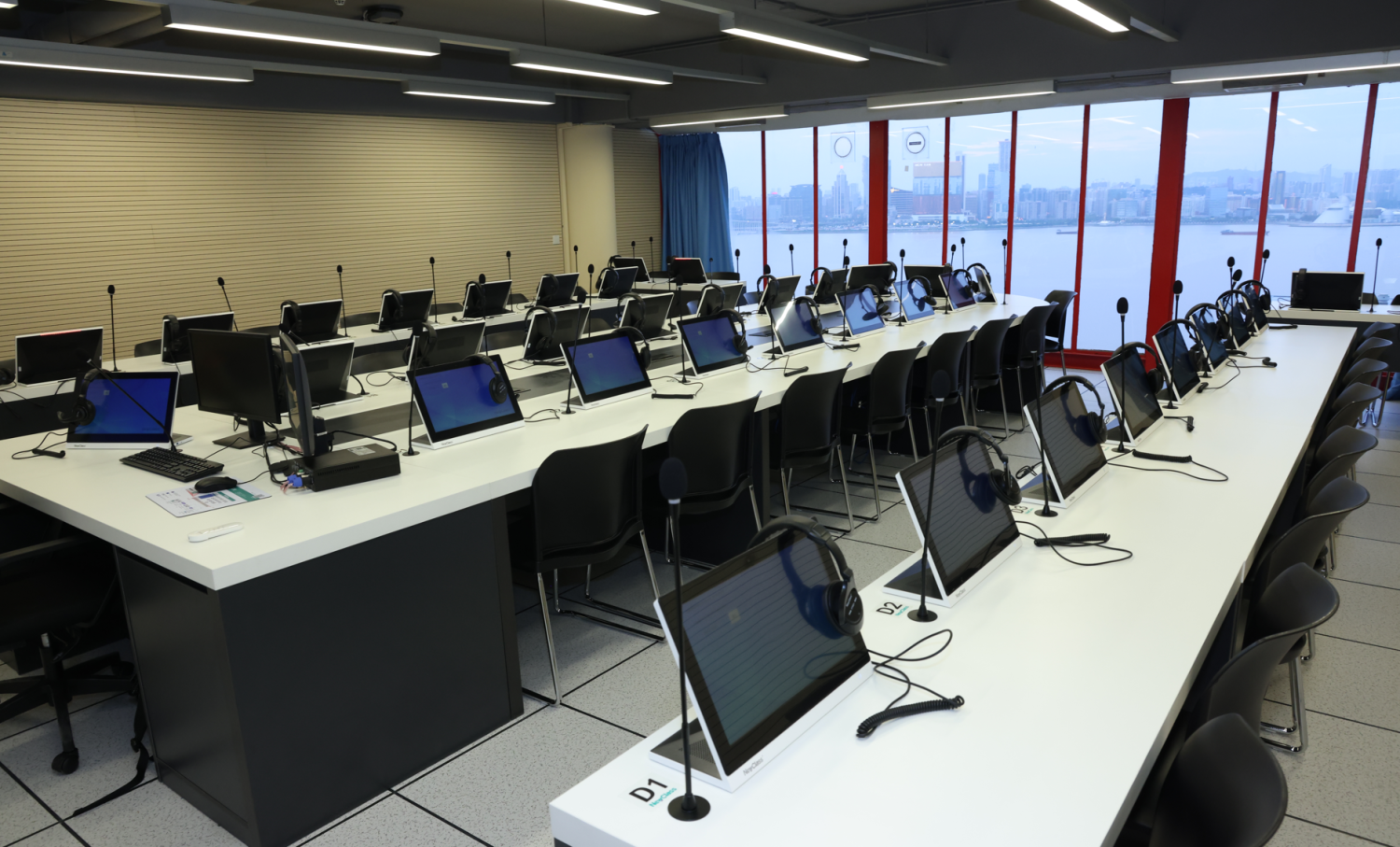 The facilities primarily include a teaching system, examination system, simultaneous interpretation conference system, remote teaching system, chairperson and interpreter touchscreen devices, among others. Through professional equipment and software for real-time translation training, the laboratory can enhance students’ response speed and translation accuracy, help students practice consecutive interpreting to improve memory and translation techniques as well as effective note-taking skills, and help students develop adaptability and psychological resilience in high-pressure environments. It provides simulated real conference scenarios, allowing students to practice interpreting skills in practical application environments. The software can record and analyze student performance to provide detailed real-time feedback and improvement suggestions. Through repeated practice and immediate feedback, students can significantly improve translation speed and accuracy while comprehensively enhancing multiple skills, including listening, speaking, memorizing, and translation.